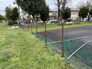 某公園のテニスコートポール塗装の模様です。